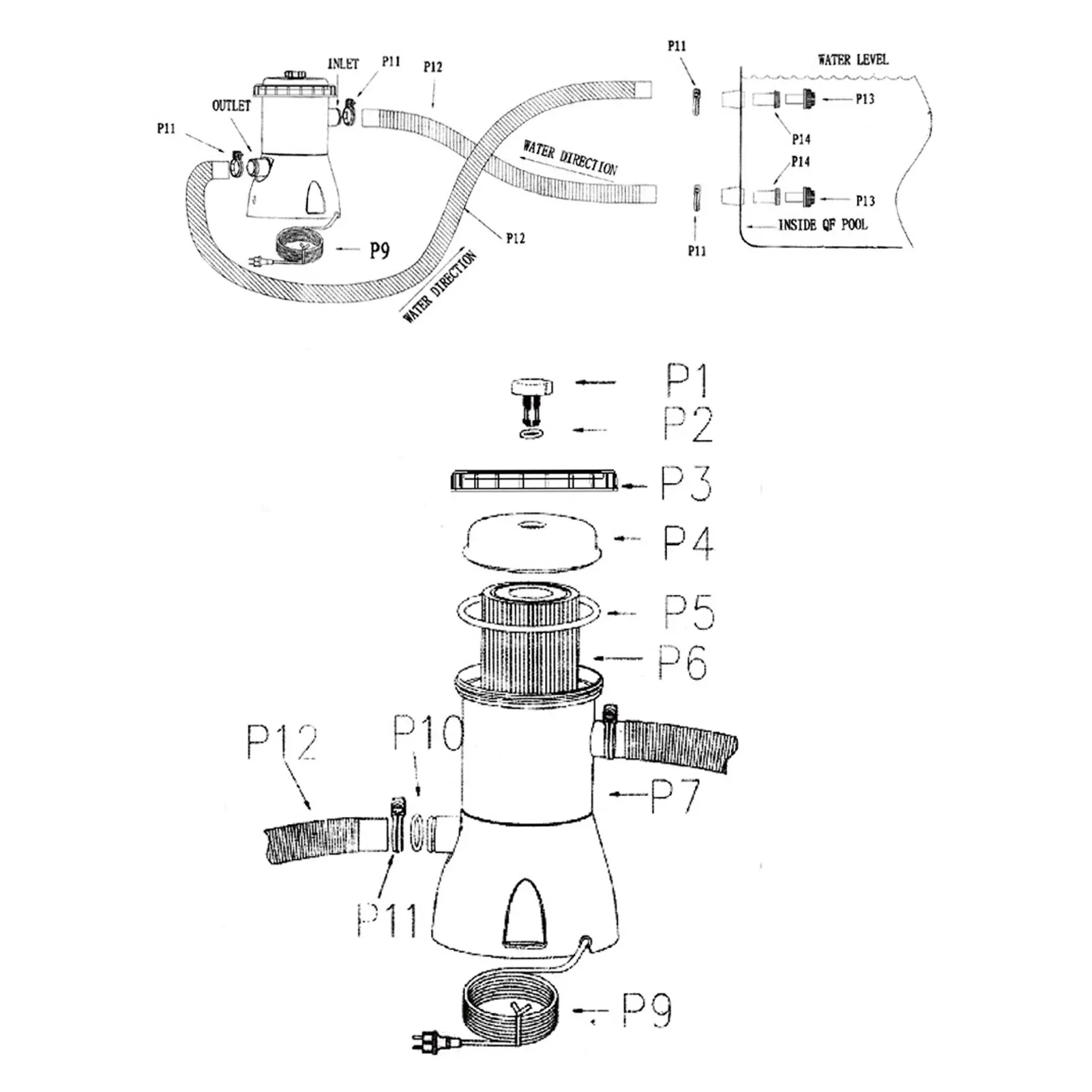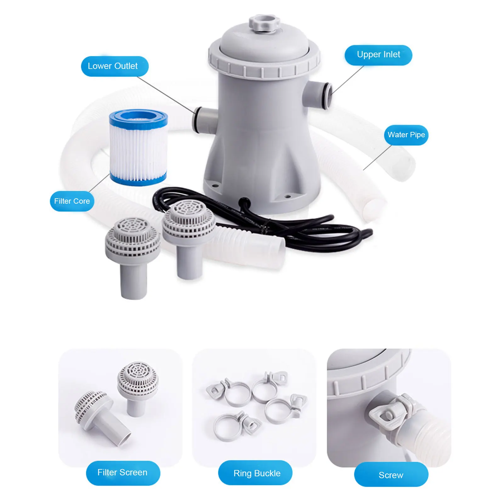4. Perfect Combination: Our pool pumps accessories are complete, including filter elements, hoses and other accessories, which perfectly solves the trouble of buying only a single swimming pool without other assembly accessories. All of parts of the above ground swimming pool pump are safe and durable, tightly connected, and not easy to leak.