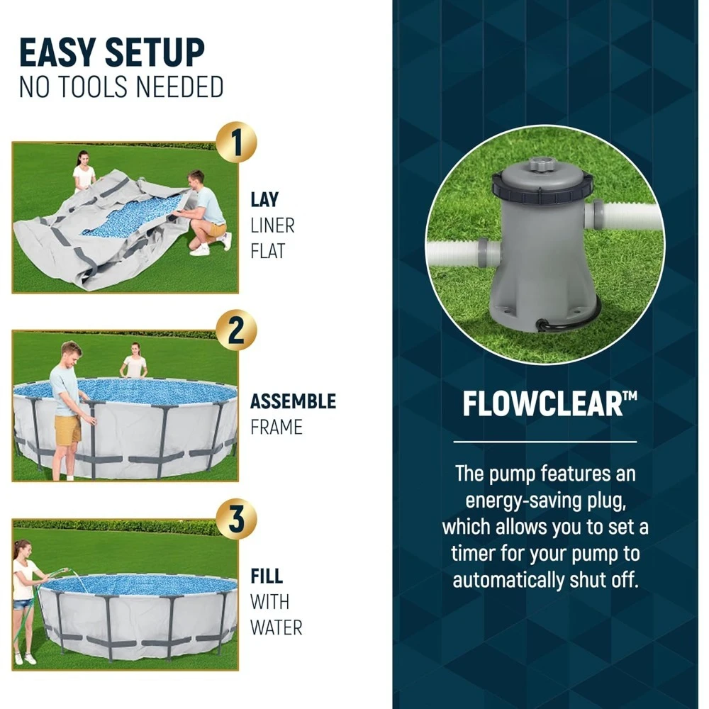 Easy Setup: Framed pool has a simple assembly and take-down process for off-season storage; No tools are required to connect the hose to the flow control valve to efficiently drain the pool water